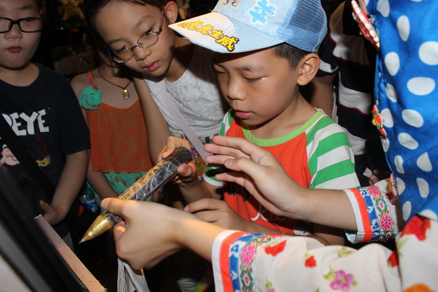 炎炎夏日,小博友们的热情却高过天气的温度。面对园区内精美的石头展品、惠安女细致的讲解,同学们无不流露出浓浓的兴致,在听的过程中不断向讲解员提出问题,即时解开疑惑。在海峡非物质文化遗产影雕体验区时,同学们更加活跃,纷纷举手想亲身体验影雕的制作。经过惠安女的指导之后,虽没有十分的专业,但是却倒也有模有样。
